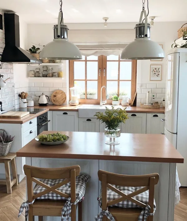 حتی پیشنهاد می شود اگر فضا کافی دارید، میز و میز جزیره آشپزخانه را به صورت یکجا در آشپزخانه خود جای دهید.
