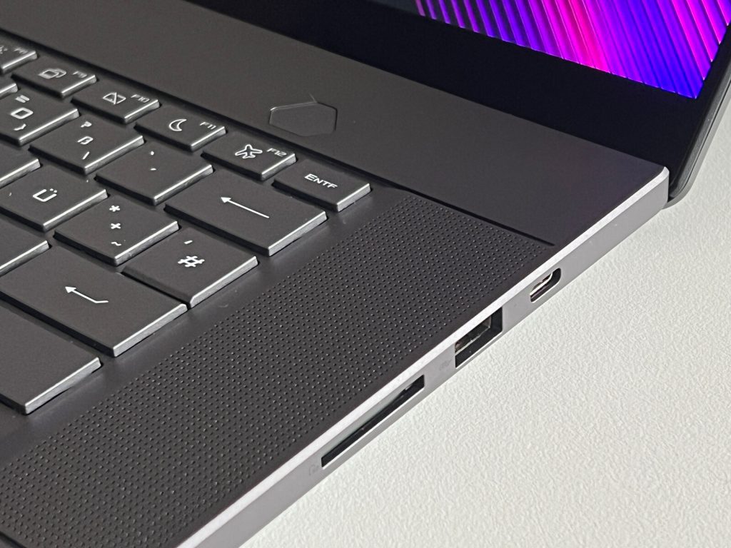زفیروس جی ۱۶ در سمت چپ خود میزبان درگاه شارژ لپ تاپ، دو پورت USB-C با پشتیبانی از تاندربولت ۴ و پاور دلیوری، مجل اتصال هدفون، پورت USB، پورت HDMI و همینطور پورت LAN است. در دیگر سمت، میتوانیم یک پورت USB دیگر و یک درگاه سیمکارت را ببینیم. از جمله اتصالات وایرلس دستگاه نیز میتوانیم به اتصال بلوتوثی از طریق بلوتوث نسخه ۵.۲ و Wi-Fi 6E اشاره کنیم.