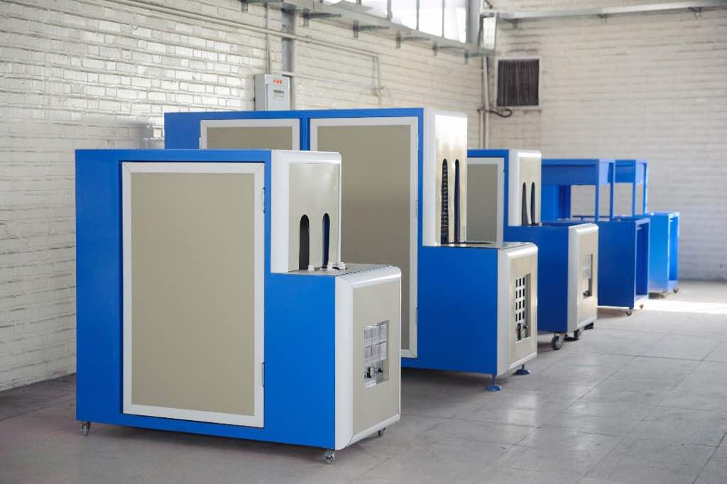 - دستگاه بادکن پت اتومات : این مدل به صورت اتوماتیک کار میکند. به عبارتی پروسه تولید بطری پلاستیکی کاملا با دستگاه و بدون نیاز به دخالت انسان انجام میشود. همه کارها به وسیله سیستمهای پیشرفته و جدید قابل کنترل انجام میشوند. کارهایی مثل تزریق مواد، بادکردن بطریها، خنک کردن و خارج کردن بطریها.