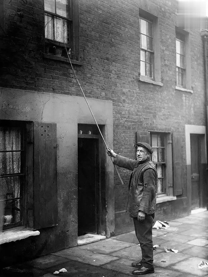 در زمانهایی که ساعتهای زنگدار در دسترس و قابل اعتماد نبودند، افرادی به نام “بیدارکننده” وظیفه داشتند مردم را از خواب بیدار کنند تا به موقع به محل کار خود برسند.