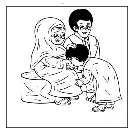 - برخورد محترمانه: نقاشی از یک لحظه که کودک با احترام و محترمانه با پدر و مادر صحبت میکند یا از آنها درخواستی دارد.