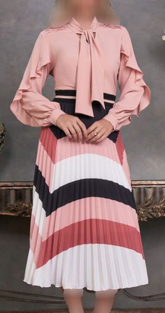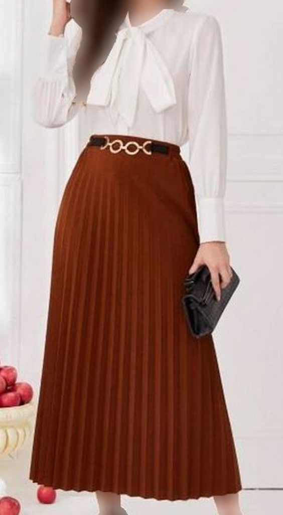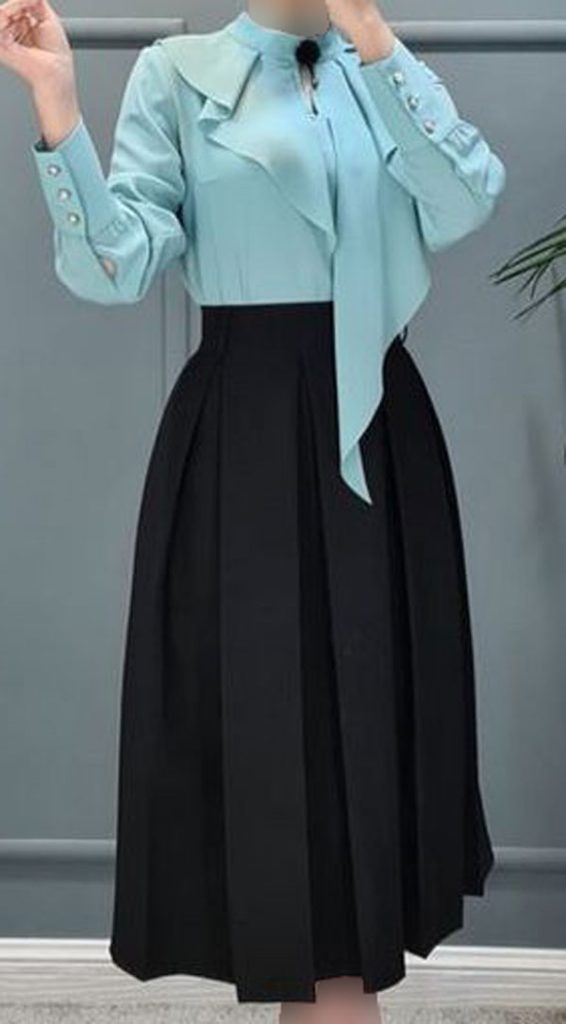 شلوار و بلوز: انتخاب یک شلوار راحت و مدرن مانند شلوار جین یا شلوار نخی. ترکیب آن با یک بلوز جذاب و شیک مانند یک بلوز با جزئیات دانتل یا طرحهای گلبرگ.