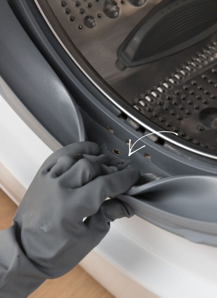 ۴) تمیز کردن لاستیک ماشین لباسشویی با پاک کننده کلر