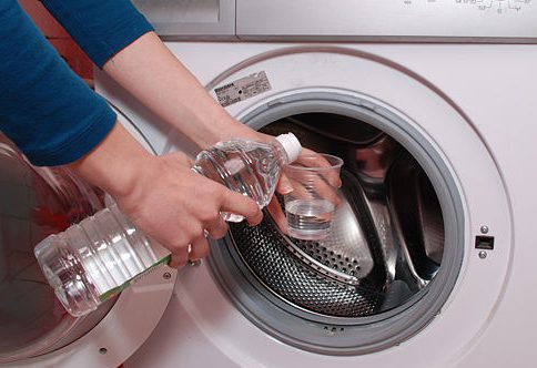 دو فنجان سرکه سفید را در ظرف شوینده یا مستقیما داخل درام بریزید.