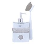 ست جا مایع بیضی لیمون به همراه اسکاچ : برای شستشوی ظروف آشپزخانه و دست و صورت ، به مایع دست یا ظرف نیاز داریم. اما این مایع های شستشو اکثرا در قالب زیبایی ارایه نمیشوند و یا پمپ آنها به سرعت خراب میشوند.