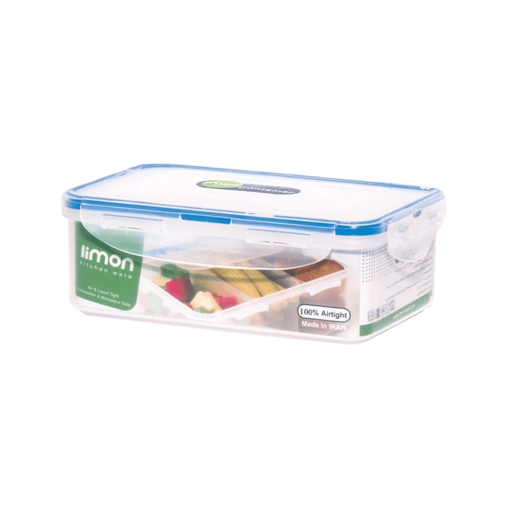 ظرف فریزری مستطیل سه خانه لیمون کد ۷۷۴۳۵ : مناسب نگهداری مواد غذائی به مدت طولانی دارای نوار سيليکون براي جلوگيری از تبادل هوا که موجب محافظت از مواد غذائی در برابر باکتری های هوازی ميشود قابليت تحمل دمائی بين ۲۰- الي ۱۲۰+ درجه سانتيگراد قابل استفاده در مايکروويو قابل استفاده در يخچال و فريزر داراي گريد غذائی قابل شستشو در ماشين ظرفشوئی