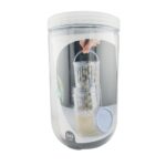 این محصول در شکل استوانه ای در دو سایز یک و دو عرضه می شود و بدنه شفاف آن این امکان را می دهد که به راحتی محتویات داخل آن را مشاهده کنید.