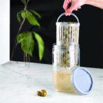 این قوطی میتواند برای نگهداری انواع زیتون، ترشی، شور و دیگر مواد غذایی مشابه استفاده شود. سبد داخلی آن به شما این امکان را میدهد که بدون ریختن مایع، مواد جامد را بهراحتی جدا کنید.