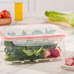 باکس سبزیجات مستطیل لیمون یکی از ظروف فریزری این برند محبوب می باشد. این ظرف دارای یک صفحه پلاستیکی شیاردار آبگیر می باشد که باعث می شود آب سبزیجات با فاصله از آنها در کف ظرف قرار گیرد که این کار موجب تازگی بیشتر و جلوگیری از خرابی سبزیجات شود.