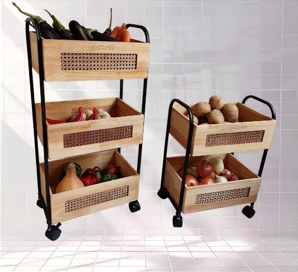 از این سبدها و توری ها برای نگهداری انواع میوهها، سبزیها و دیگر مواد خوراکی نیز استفاده میشود. برخی از سبدهای سیبزمینی و پیاز چندطبقه هستند و دارای کشو هستند.