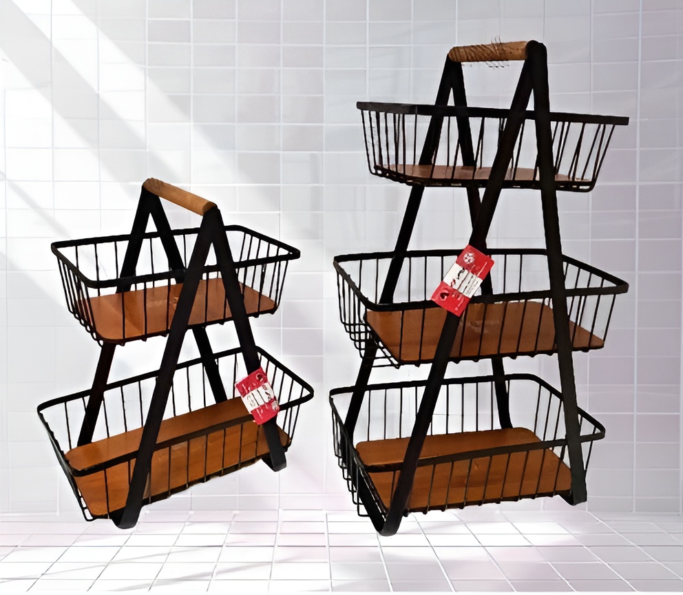 از این سبدها و توری ها برای نگهداری انواع میوهها، سبزیها و دیگر مواد خوراکی نیز استفاده میشود. برخی از سبدهای سیبزمینی و پیاز چندطبقه هستند و دارای کشو هستند.