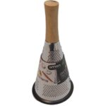 این رنده از جنس استیل ضد زنگ است و بدنهی مخروطی شکل دارد که مواد غذایی به راحتی از آن خارج میشود.