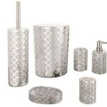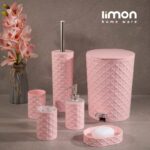 ست بهداشتی لیمون ظاهری زیبا دارد . این ست شش تکه شامل جای صابون مایع دستشویی ، جای صابون قالبی ، جا مسواک، یک عدد لیوان، سطل زباله و یک عدد برس توالت شور می باشد.