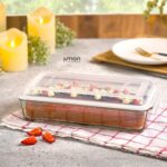 ظرف شیشه ای مستطیل دربدار ۱/۴ لیتر لیمون کد ۲۰۵۰۳۵ : ظرف شیشهای درب دار از انواع ظروف نگهدارنده مواد غذایی است. در ساختار این ظروف از بهترین مواد اولیه مرغوب استفاده شده است که به نگهداری بهتر غذا کمک میکند.