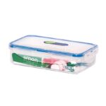همچنین واشر سیلیکونی دور درب این محصول از تبادل هوا به داخل ظرف جلوگیری کرده که این امر باعث تازه ماندن مواد غذایی داخل ظرف می شود. ظرف فریزری چهار قفل دارای یک صفحه آبگیر پلاستیکی سوراخدار می باشد.